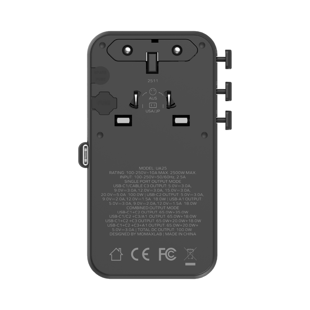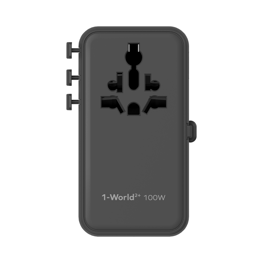 MOMAX 1-WORLD2+ 100W 4 PORT DUAL AC TRAVEL ADAPTOR WITH BUILT-IN CABLE
